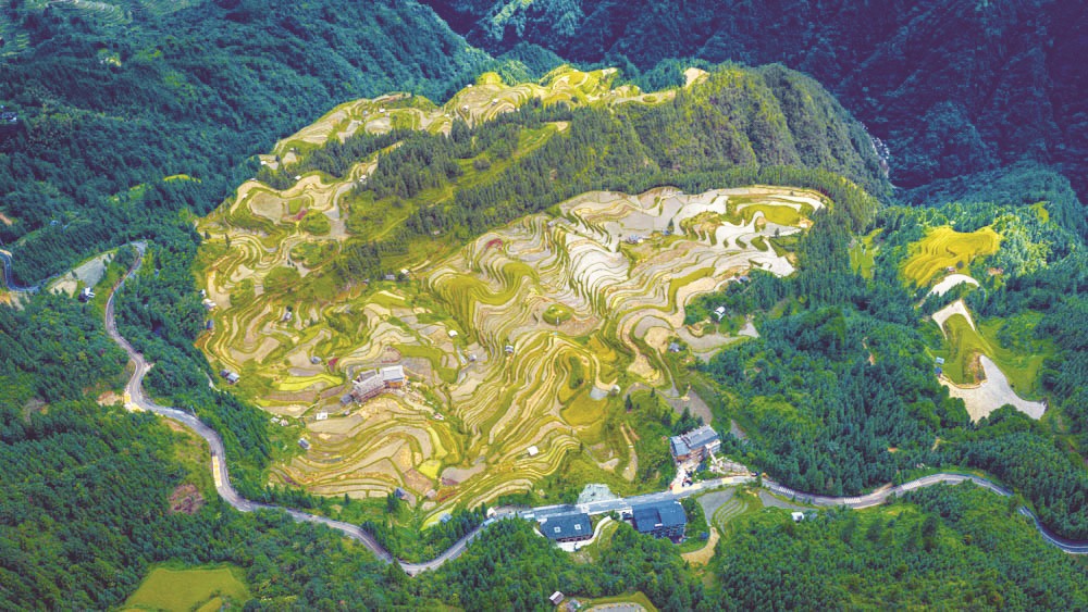 近日,贵州省黔东南苗族侗族自治州从江县加榜乡加榜梯田迎来丰收季,层层叠叠的田垄铺满金黄稻穗,微风拂过,稻浪翻滚,与错落的吊脚楼、云雾山景相互映衬,“丰”景如画。
