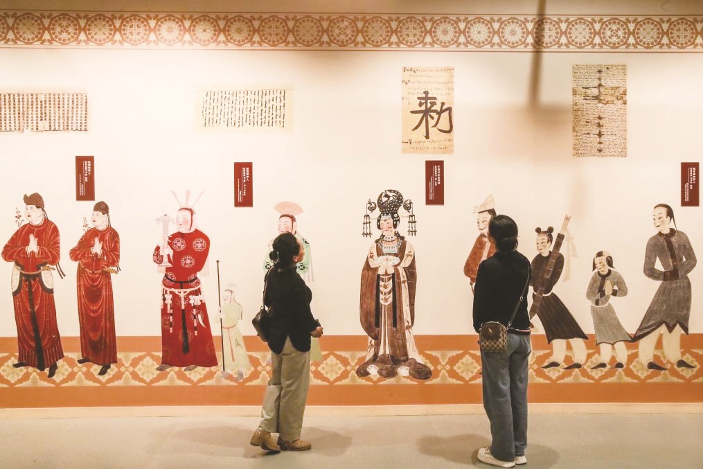 9月20—22日,第八届丝绸之路(敦煌)国际文化博览会在甘肃省敦煌市举行。敦煌研究院“典范”“高地”建设成果展、甘肃文旅“非遗”文创展、敦煌·丝路雕塑展等多项展览同步亮相,集中展现了敦煌文化遗产保护、研究、弘扬的最新成果以及共建“一带一路”国家的文化艺术、“非遗”文创、风土人情等精彩内容。图为游客在敦煌文博会参观。