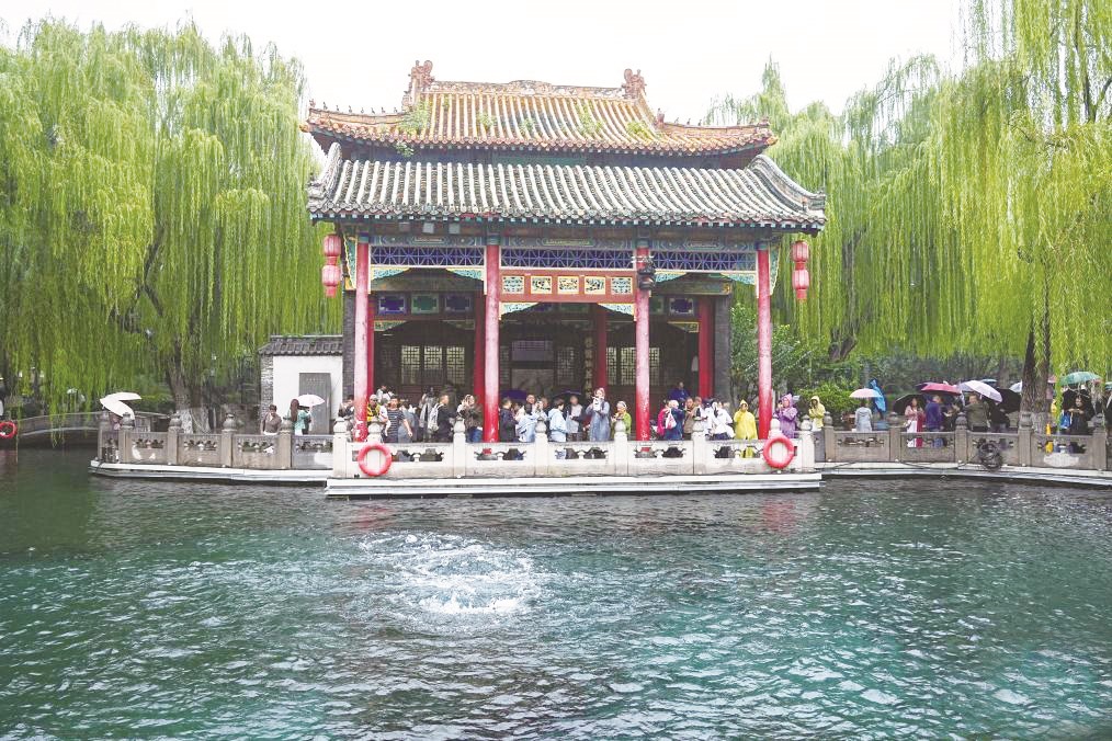 受连日降雨影响,山东省济南市趵突泉泉水喷涌势头强劲,再现“趵突腾空”景象。(朱峥/摄)