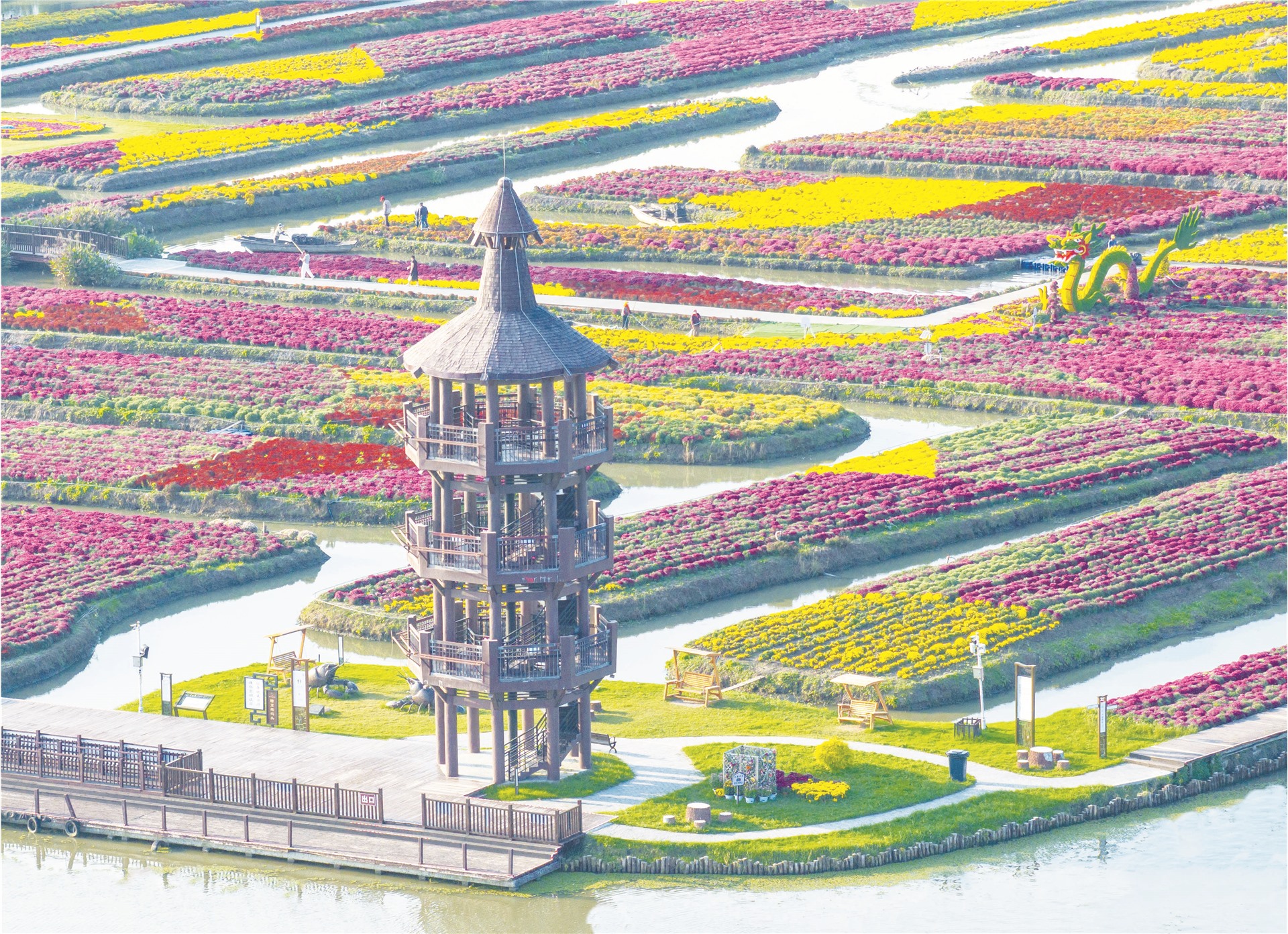 ▲10月11日在江苏省兴化市千垛景区拍摄的花海。(周社根/ 摄)