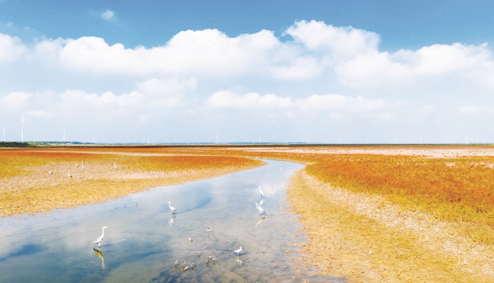 ▲10月11日,候鸟在江苏东台条子泥湿地栖息、觅食(无人机照片)。(孙家录/摄)