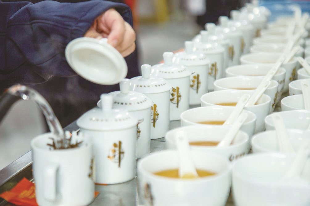 10月20日,第六届桐木村武夷红茶茶王赛落下帷幕,决出了“金骏眉”“正山小种”“老枞红茶”和“正山野茶”4个类别新一届的“茶王”。图为工作人员在桐木村武夷红茶茶王赛上冲泡茶叶。