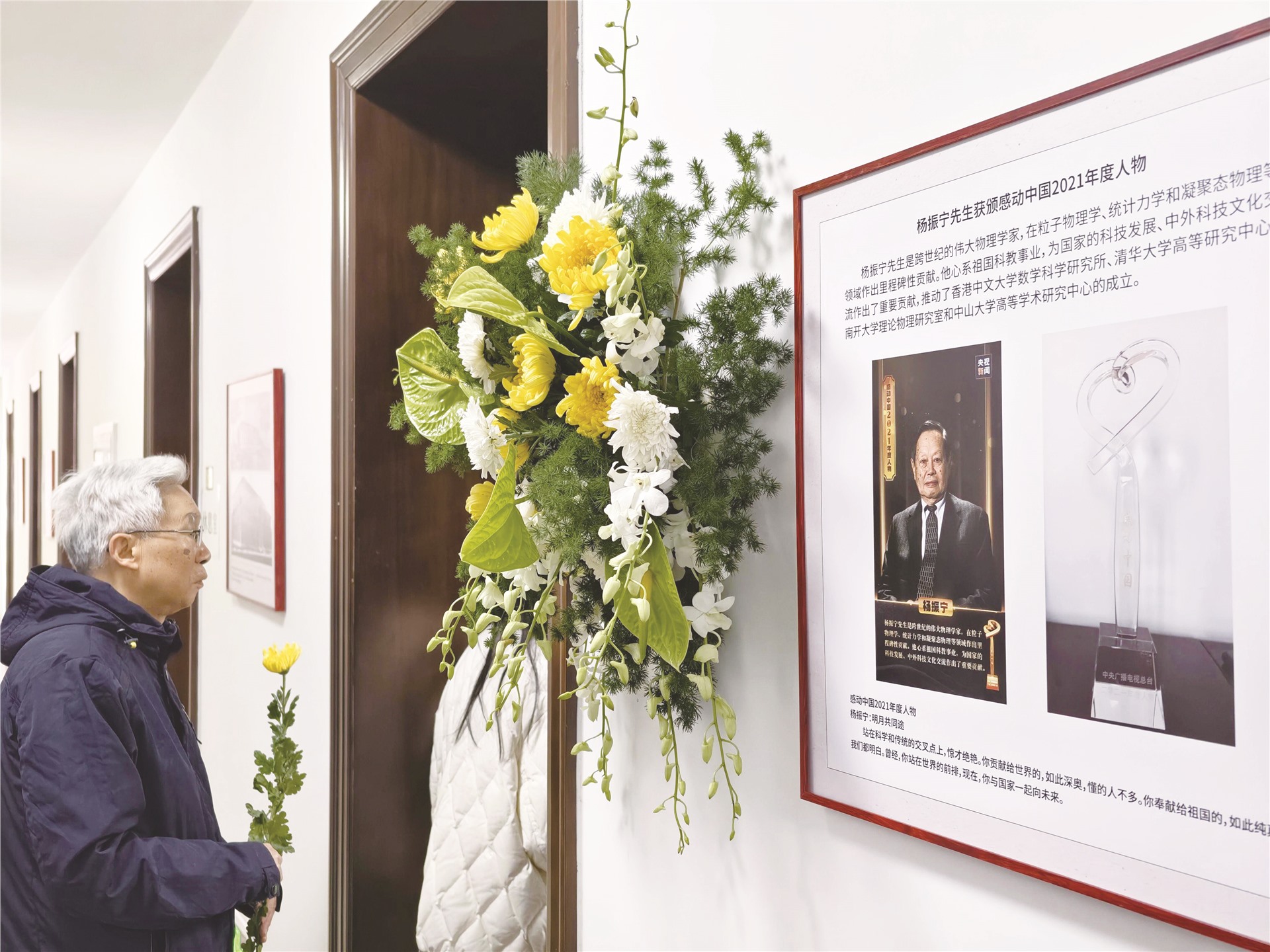 ▲10月19日,一位男士来到清华大学高等研究院悼念杨振宁。