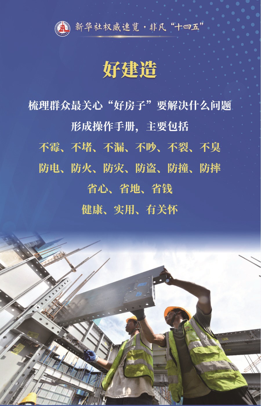“好房子”承载着千家万户对美好生活的向往,党中央、国务院作出了建设安全、舒适、绿色、智慧“好房子”的决策部署。推动“好房子”建设,住房城乡建设部门重点抓5个方面工作:好标准、好设计、好建材、好建造、好运维。跟随这组海报,一起了解下。