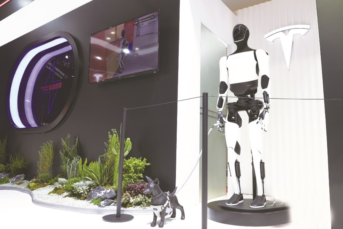 11月5日,第八届中国国际进口博览会暨虹桥国际经济论坛开幕式在国家会展中心(上海)举行。此次盛会有155个国家、地区和国际组织参与,4108家境外企业参展,整体展览面积超过43万平方米,规模再创新高。图为特斯拉人形机器人亮相进博会。