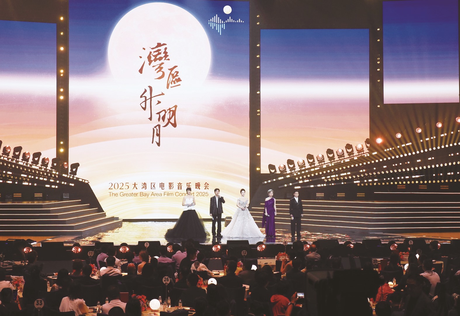 ▲主持人在“湾区升明月”2025大湾区电影音乐晚会现场主持。