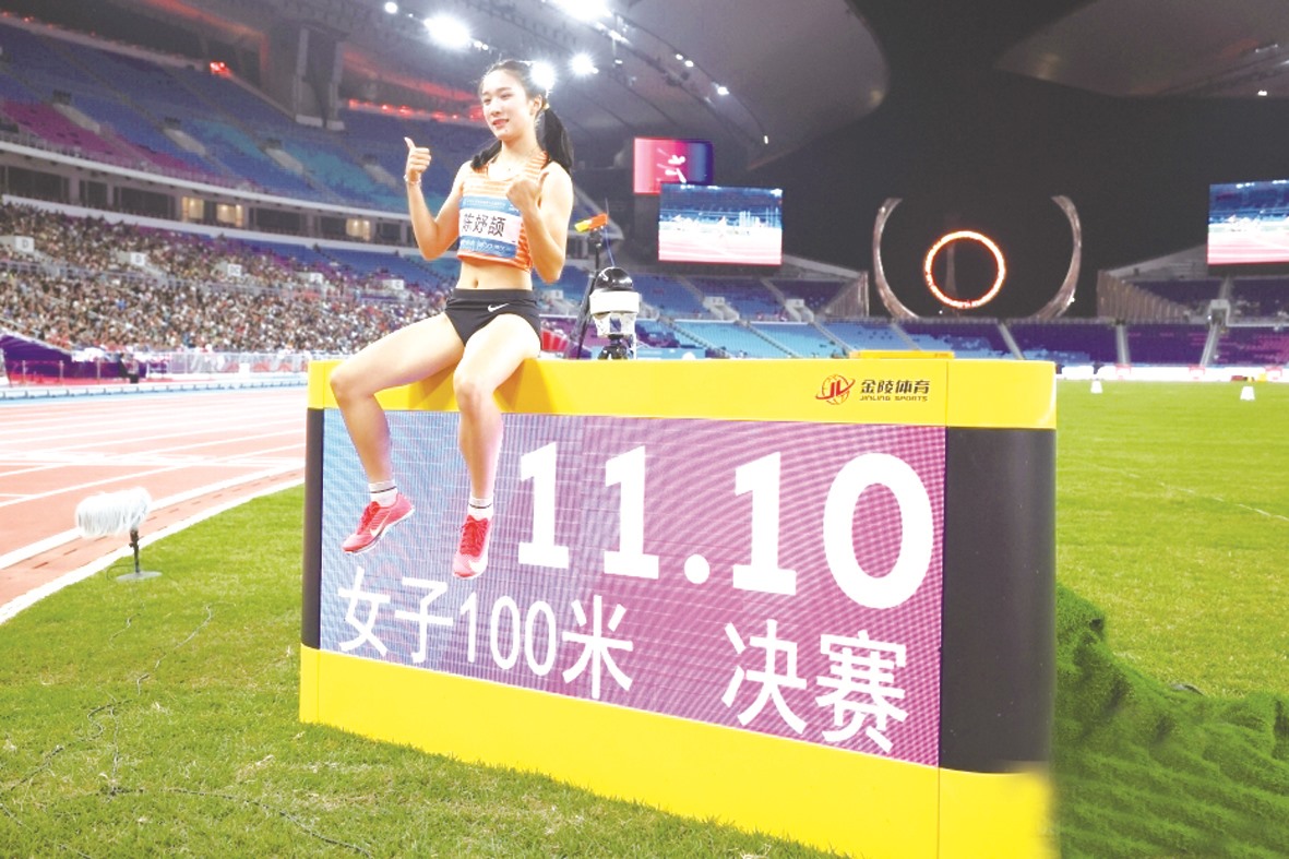 11月17日,第十五届全国运动会田径女子100米决赛在广东省奥体中心体育场举行。浙江队陈妤颉以11秒10夺得金牌。