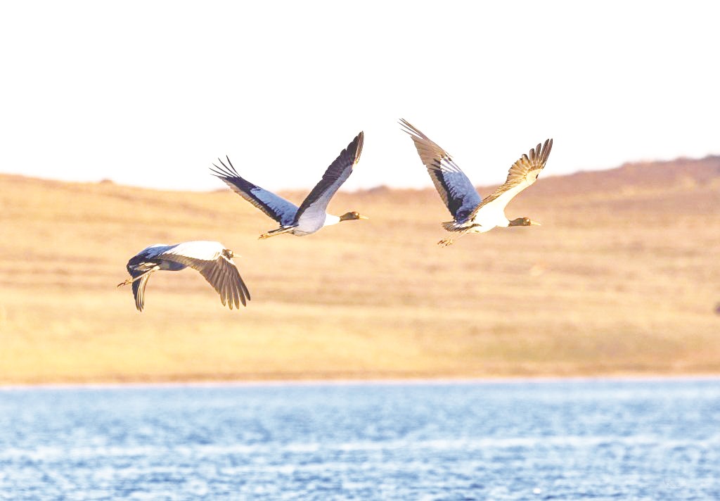黑颈鹤飞抵云南大山包越冬
