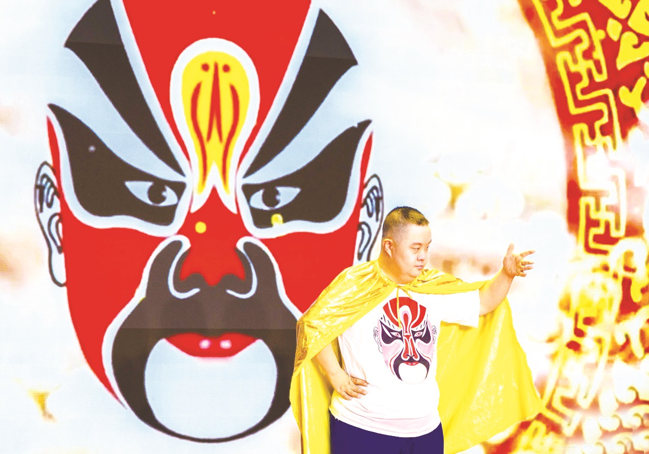▲“演员在呼和浩特市玉泉区第二届残疾人文艺汇演上表演《说唱脸谱》。