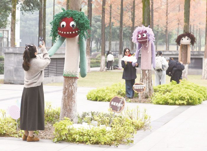 大树“穿”上卡通外衣 萌趣十足暖意浓
