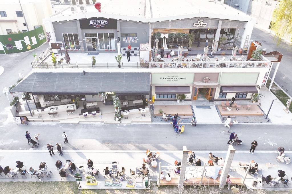 近年来,西安市持续推进城市更新,对老街区、老厂区、老校区等一些老旧城市区域进行改造建设,通过保护历史文化遗存、引入创新文化消费业态等方式,打造出一个个活力焕发的“新社区”。图为游人在西安时光文化公园消费休闲 (无人机照片)。这座公园是由西安国营第一钟表机械厂旧厂区改建而来的。