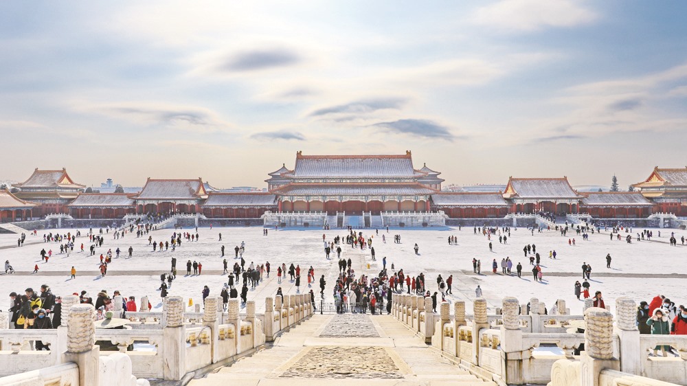▲游客在北京故宫博物院赏雪游玩。 (刘宪国 /摄)