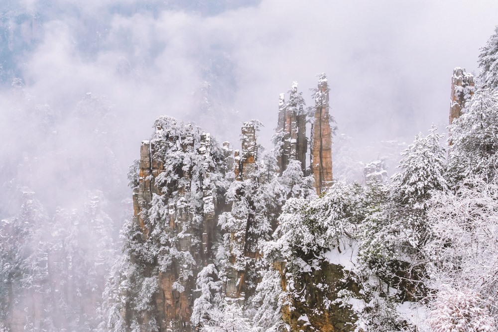 ▲在湖南省张家界市武陵源国家森林公园拍摄的雪景。(田其珍/ 摄)