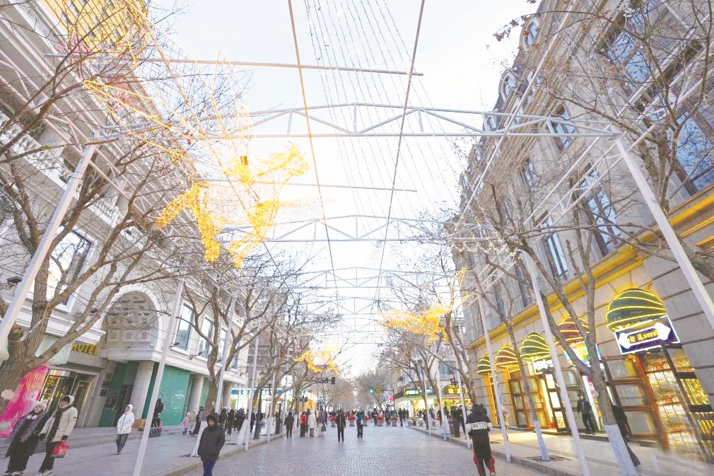 12月以来,哈尔滨进入冬季旅游旺季,中央大街上游人如织。作为哈尔滨市闪耀的城市名片,中央大街在丰富多彩的创意景观与灯饰装饰下显得格外动人。夜幕降临,华灯初上,游人徜徉其中,尽享当地独特文化魅力。