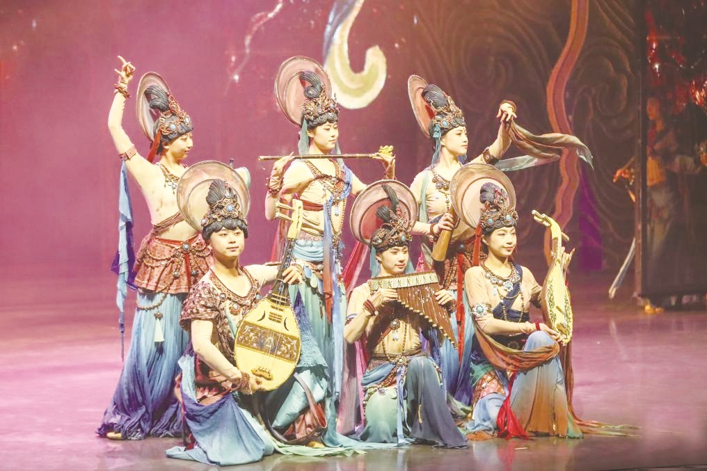 《乐动敦煌》通过全息投影等数字技术、美轮美奂的舞台美术设计以及演员的精彩表演,生动还原了莫高窟壁画中“伎乐飞天”等经典乐舞场景。