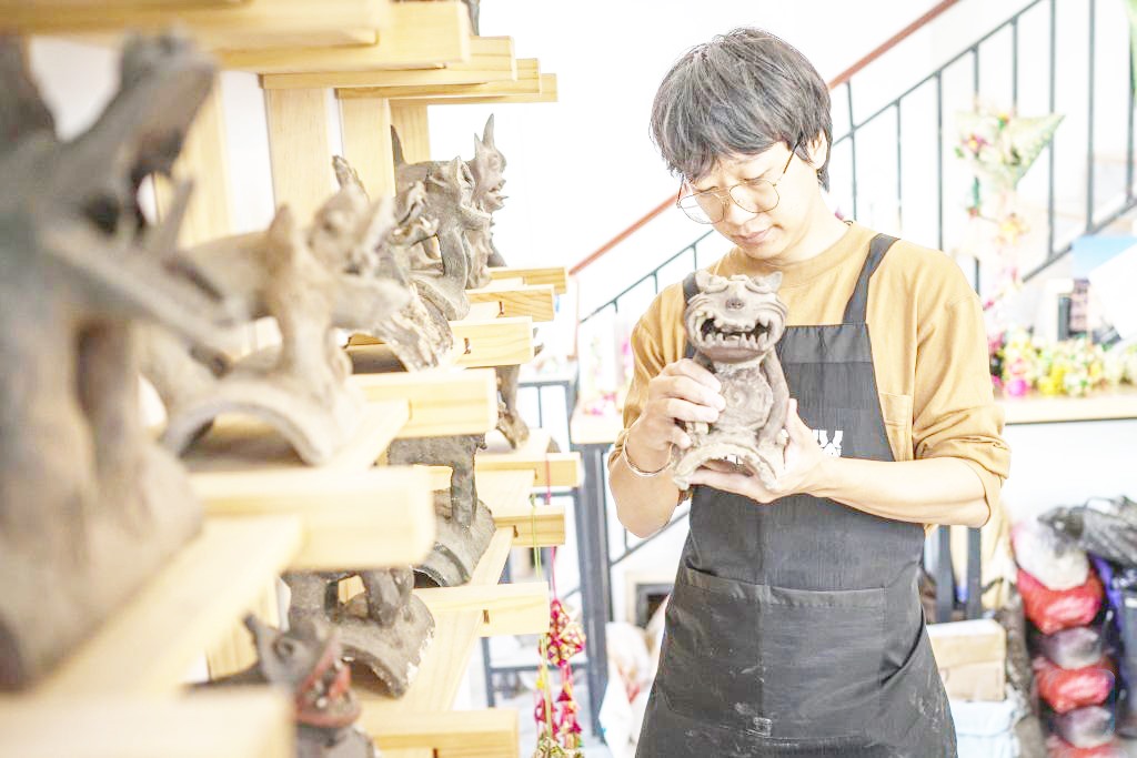 ▲张航在“心房瓦猫博物馆”内整理瓦猫。(王冠森 /摄)