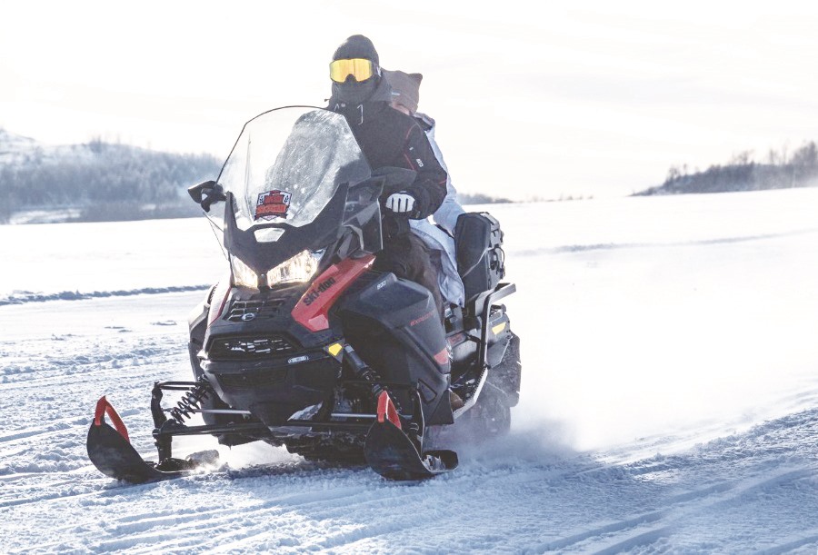 12月22日,游客在内蒙古牙克石凤凰山景区驾驶雪地摩托,体验在林海雪原间穿梭的速度与激情。(吕昊俊 /摄)