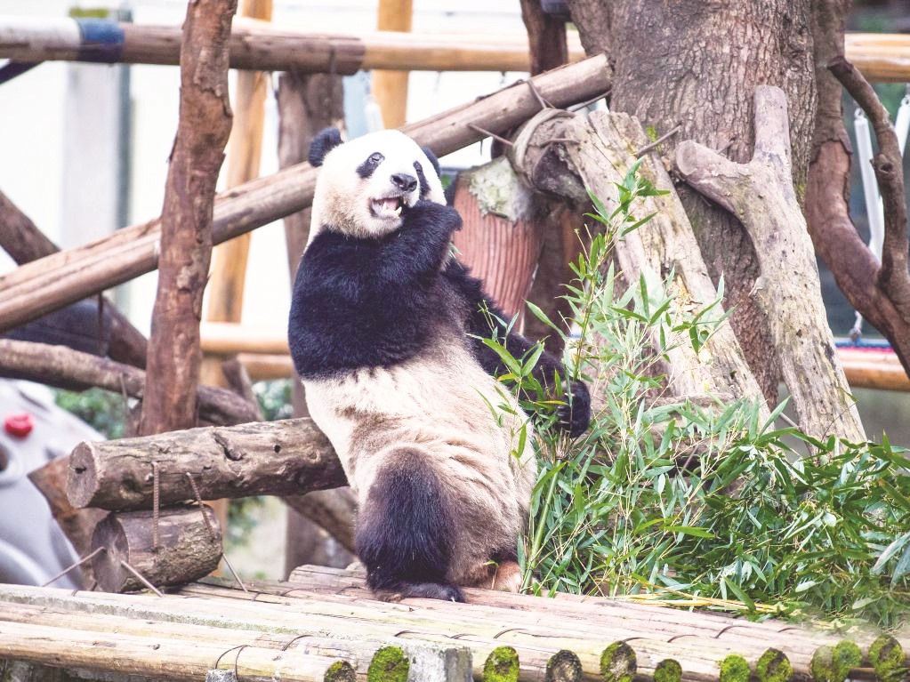 12月22日,重庆动物园大熊猫馆下馆完成馆舍改造并迎来大熊猫入住。本次改造工程针对大熊猫馆下馆内舍更新了部分设施,改善了圈舍通风,针对外运动场进行了丰容改造,模拟更加自然的生态环境。此次改造为“国宝”提供了更舒适、健康的生活空间。图为入住的大熊猫在吃竹子。