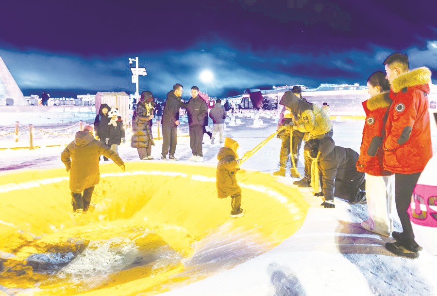 ▲游客在第五届呼和浩特欢乐冰雪节园区体验冰雪项目。(丁根厚 /摄)