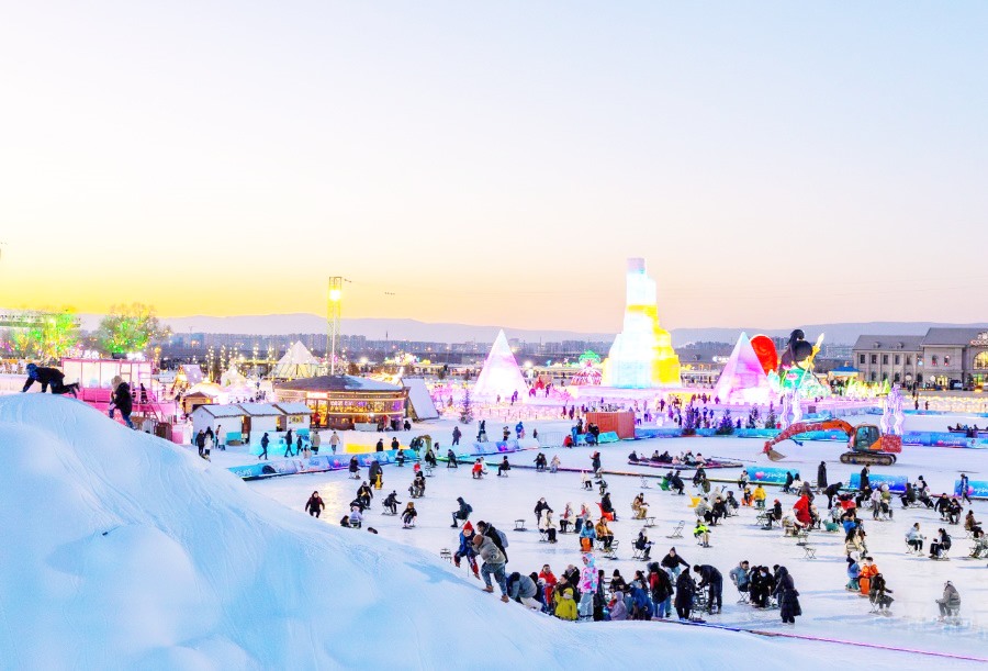 ▲游客在第五届呼和浩特欢乐冰雪节园区游玩。(丁根厚/ 摄)