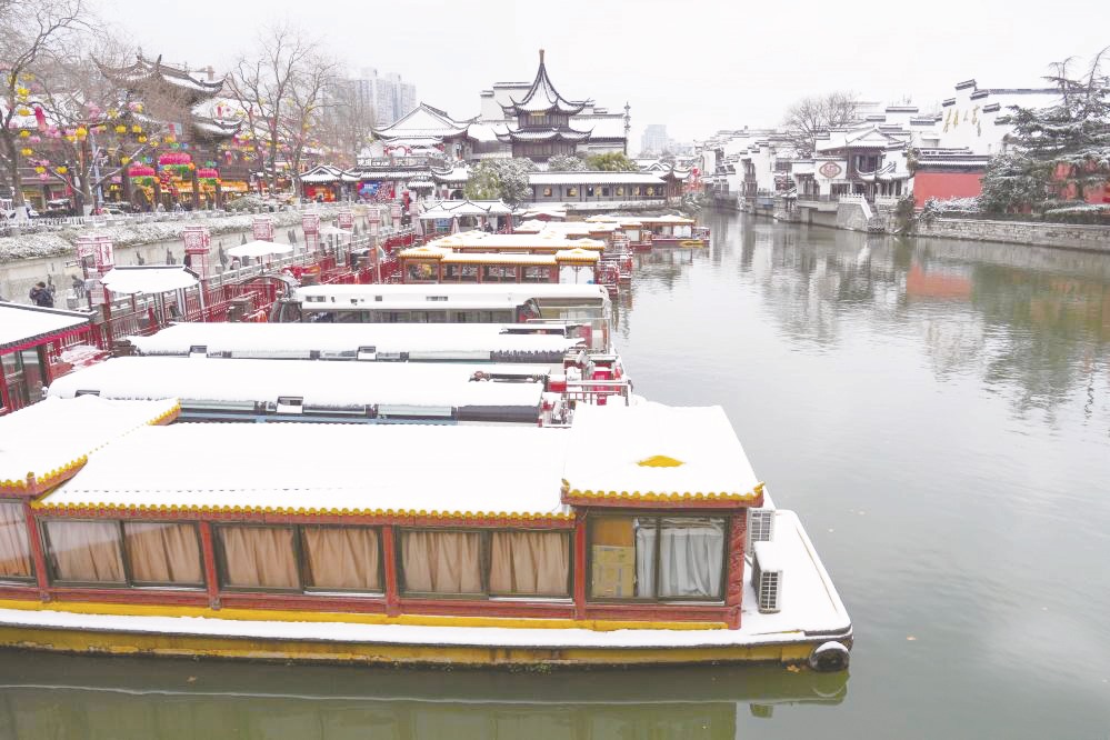 在南京夫子庙景区拍摄的雪景。(李博/ 摄)