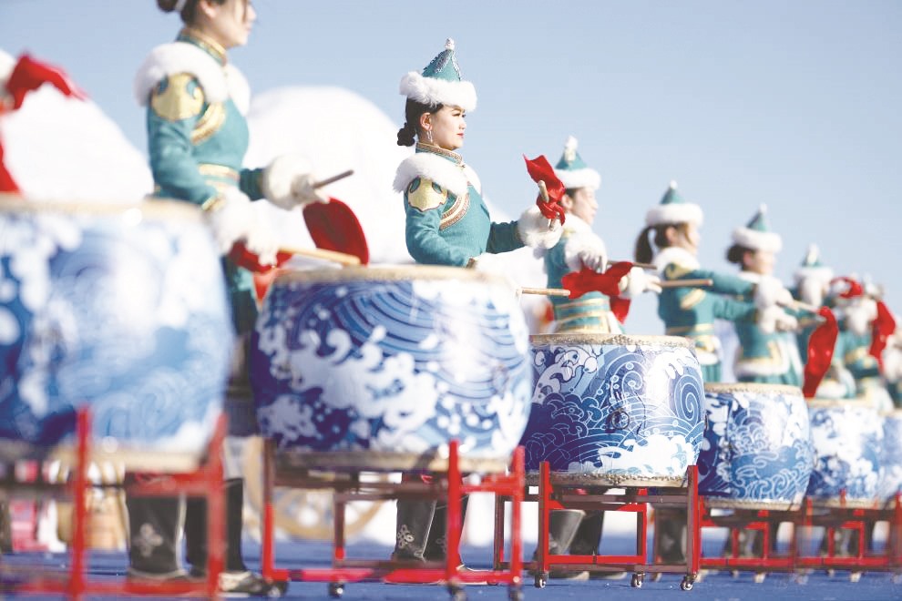 ▲呼和浩特哈素海第四届冬捕节开幕式上的文艺表演(2026年1月10日摄)。(连振 /摄)