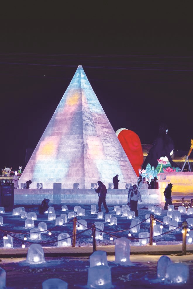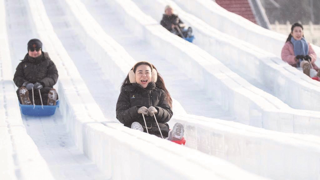 ▲人们在呼和浩特第五届欢乐冰雪节上游玩(2025年12月31日摄)。(连振 /摄)