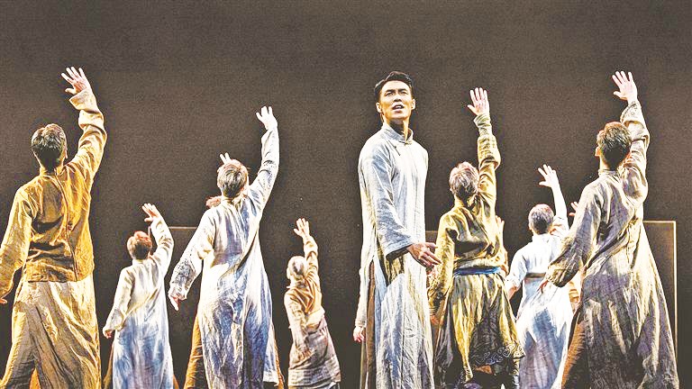 作品中段,多松年牺牲后的场景尤为典型,领舞赵磊在前方小幅度摆动肩膀,身后群舞逐渐以相同动作显现,在倒下的同时被身边的伙伴扶起,这一编排不仅隐喻革命事业前赴后继的精神,也通过肢体语言实现了历史与当代的对话。