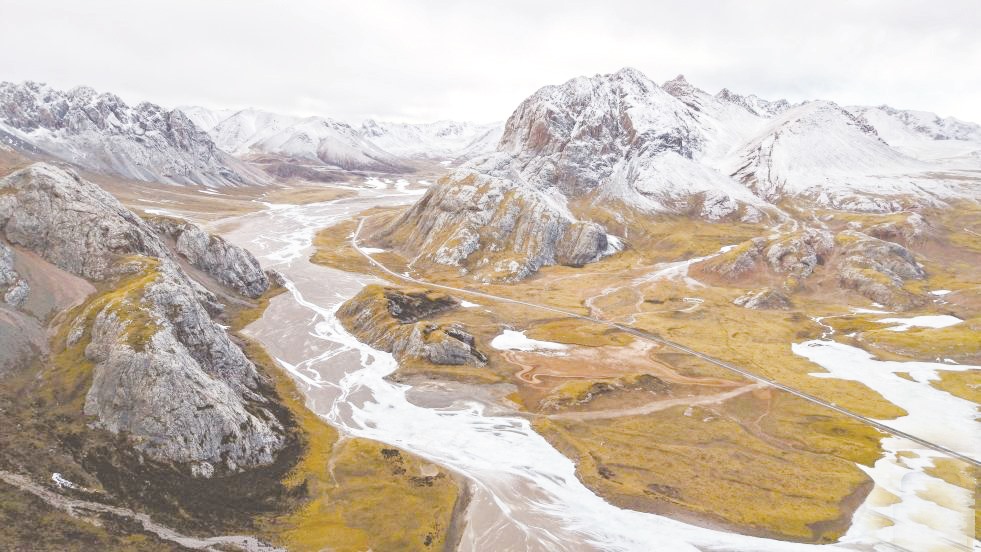 青海省玉树藏族自治州地处三江之源、青海省南部。隆冬时节,草原苍茫,河湖凝玉,江源大地尽展肃穆壮美的高原冬韵。图为青海省玉树藏族自治州杂多县境内拍摄的冬景风光。
