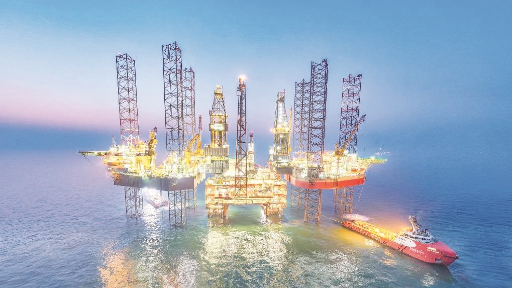 2月24日,是春节假期结束后的第一个工作日,各地企业纷纷开工生产。图为渤海油田海上油气平台作业现场(无人机照片)。
