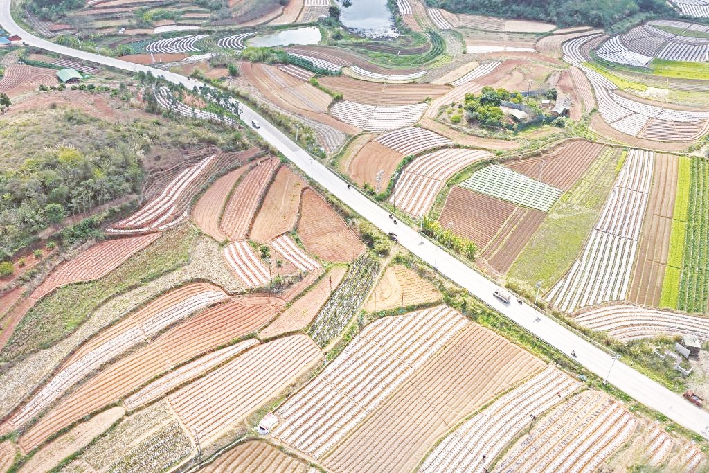 初春时节,广西南宁市邕宁区蒲庙镇村民忙着春耕春管,田园里一派繁忙景象。图为广西南宁市邕宁区蒲庙镇田园景象(无人机照片)。