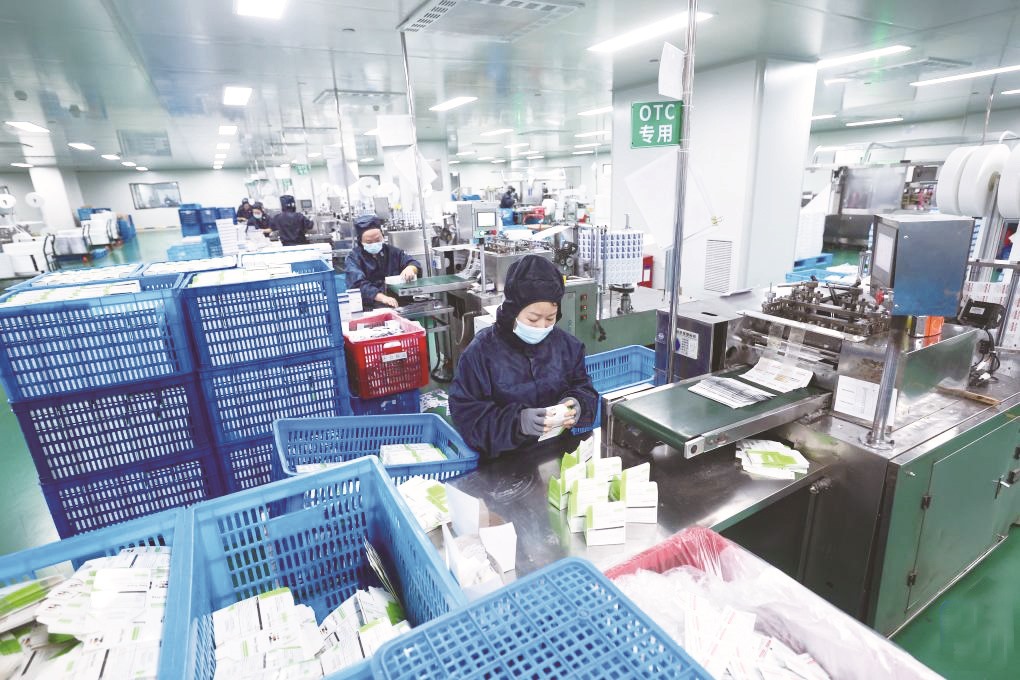 ▲在位于金华市金东区的景迪医疗用品有限公司车间内,流水线上在生产医疗用品。该公司主要产品为医用敷料、耗材,防疫防控、消杀产品等,主要销往国内市场及欧美、中东等海外市场,是国家高新技术企业。