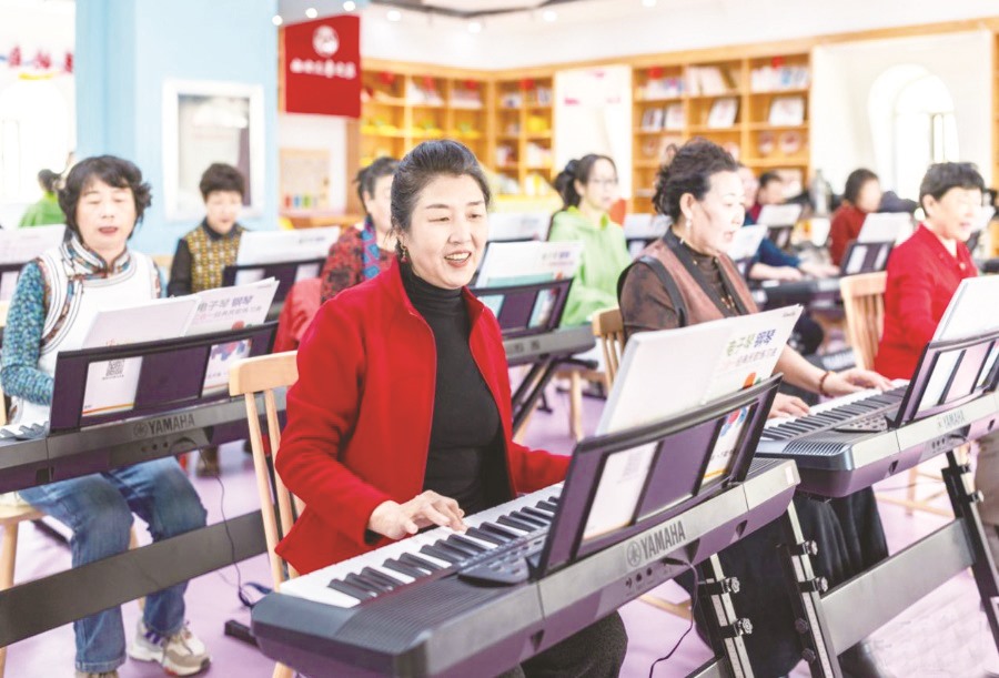 ▲老年学员在呼和浩特市玉泉区老年大学学习电子琴演奏。