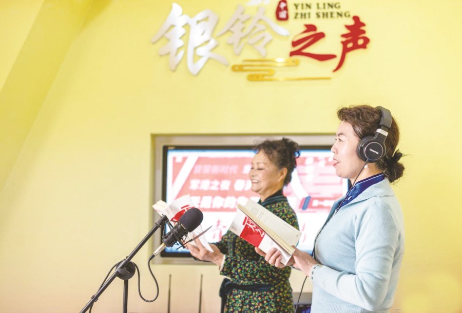 ▲老年学员在呼和浩特市玉泉区老年大学“银龄之声”朗诵课上练习朗诵。
