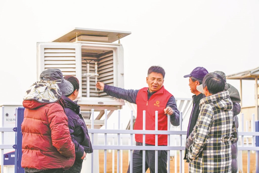 3月23日是世界气象日,多地组织开展气象科普活动,普及气象知识。今年世界气象日的主题为“测今日气象,护明日家园”。 图为河北省遵化市气象局的工作人员在农业气象监测站向农民讲解气象知识。