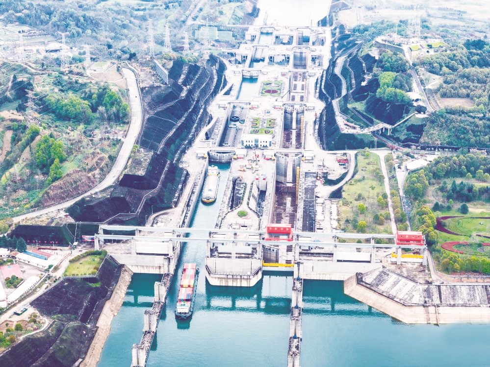 三峡南线船闸2026年计划性停航检修于3月4日开工,计划工期45天,目前施工进度过半。检修期间,三峡枢纽通航保障有力,各类重点急运物资有序过坝。图为三峡枢纽南线船闸正加紧检修,北线船闸有序通航(无人机照片)。