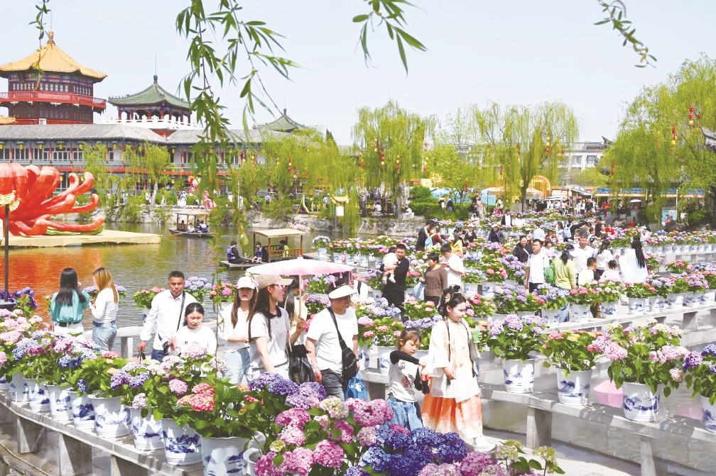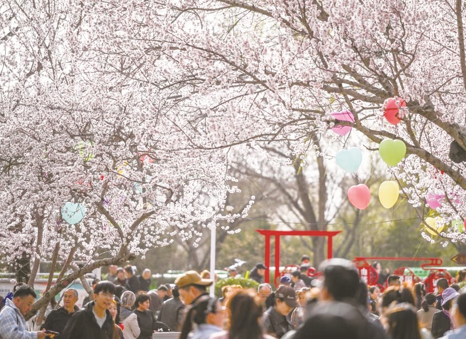 游客在内蒙古呼和浩特市公主府公园踏青赏花。(连振 /摄)