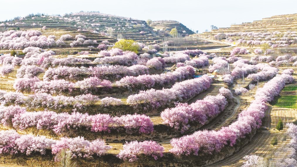 清明小长假期间,位于宁夏固原市彭阳县黄土高原梯田间的数十万亩桃花、杏花进入盛花期。当地结合六盘山山花节,为游客打造多条踏青赏花旅游线路,让游客在黄土高原、梯田之间感受春日花海的魅力。