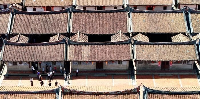 村民代代坚守着“房屋建制不逾祖制”,即建房全部统一坐向、统一造址、统一风格、统一配套、统一排水。276座古厝按“九宫”格局呈轴对称排列,格局、形态、大小几乎一致,横竖对齐、整齐划一。先后获评“中国历史文化名村”和“中国传统村落”。